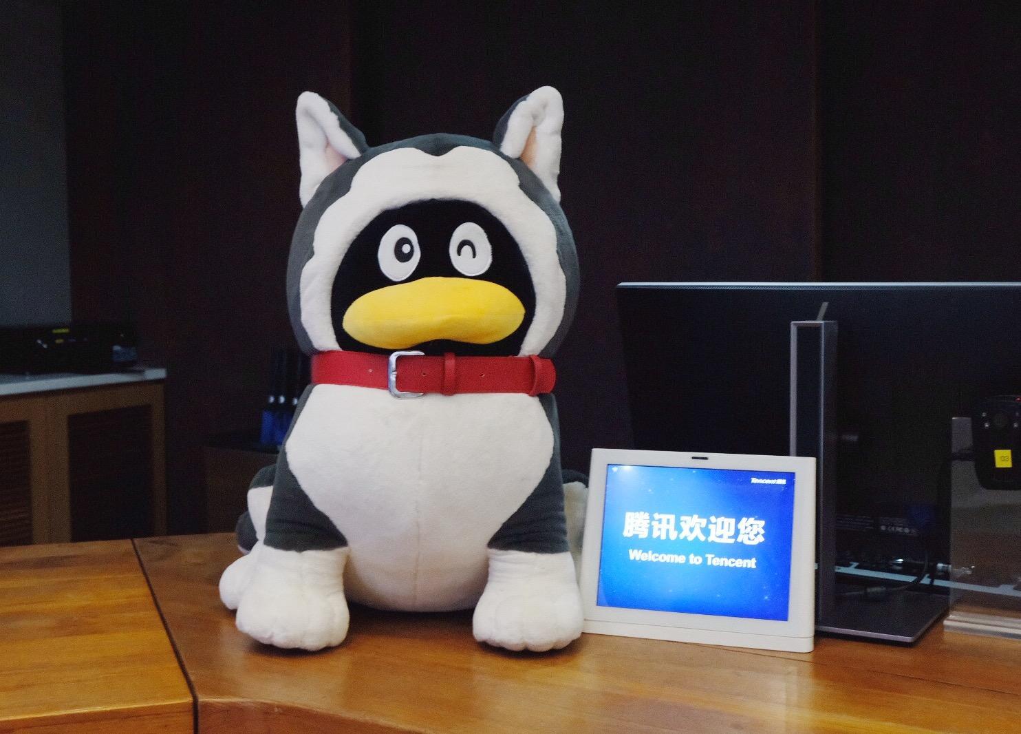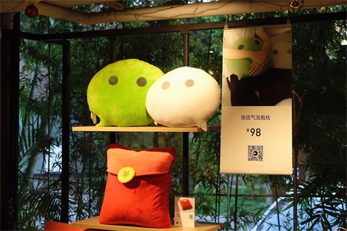进入办公楼,里面的摆设也是文创范,映入眼帘的带有微信元素的文化衫、木制品等。墙面的荧幕,则显示了微信最新的用户,已达到7.5亿人,其中中国大陆占大多数台湾用户也不少。