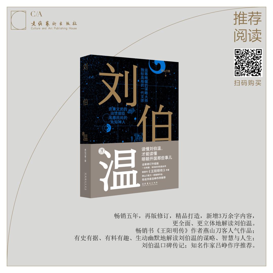 究竟他是如何在元朝的统治下度过前半生?又是怎样的机缘让他转变志向,在知天命的年纪出山辅佐朱元璋?他的一生究竟立下了怎样的奇功伟业,他的死亡是否像传说中那样离奇?历史的迷雾千年未散,所庆幸的是,作家燕山刀客将探索的目光投向了这位千古人豪,他又潜心创作了这部《刘伯温传》,并于今年在文化艺术出版社隆重出版。在这本书中,作家燕山刀客用他独到的眼光、风趣的语言,带领大家走进这位神人雄奇跌宕的一生。