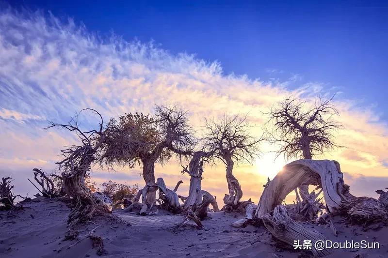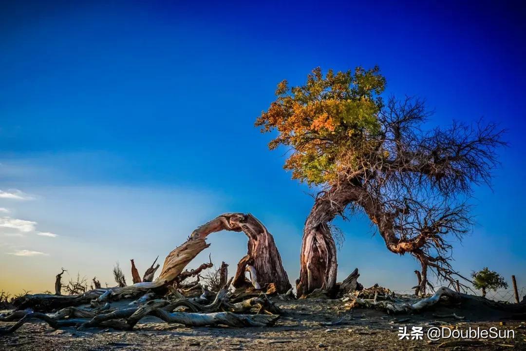 五道桥体型高大的胡杨是标志性景观,而且生长在广袤的盐碱沙漠上,很容易拍出大片;