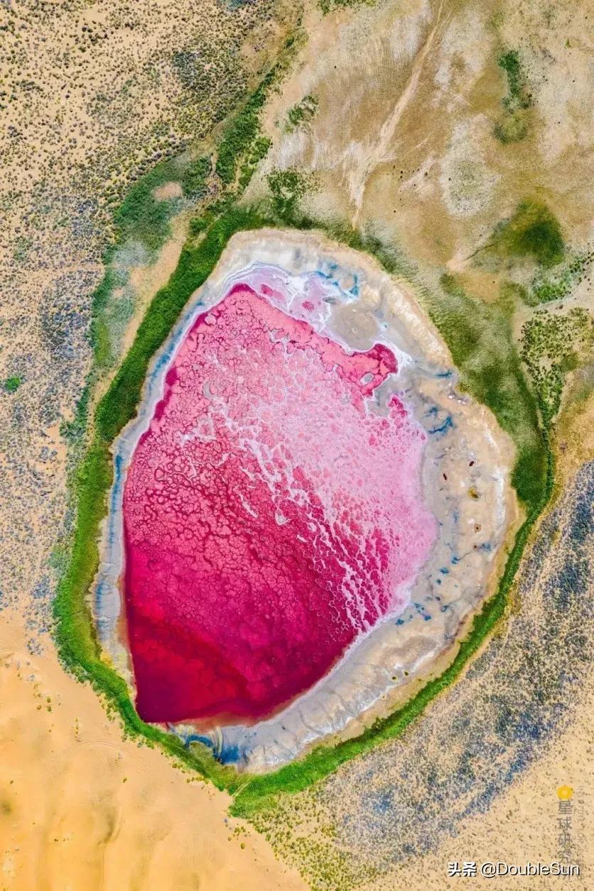 巴丹吉林里的湖泊以蓝的、白的为主,却有3个格外美丽的红海子,有点像西澳的粉色湖,但形成原因不一样。