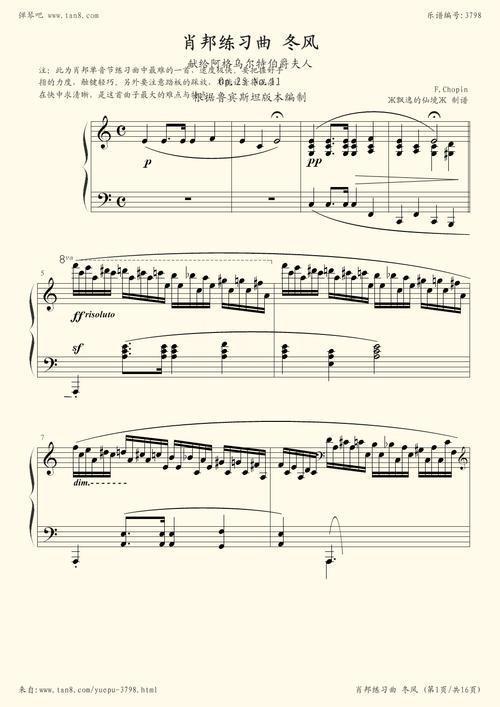8.练习曲(Études):肖邦的练习曲是钢琴技巧练习的经典作品,其中最著名的是《革命练习曲》(Revolutionary Étude),这首曲子充满激情和力量,展现了肖邦对自由和热情的追求。