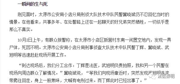 之后我立马出来要求先断电,然后再一个人进去摸黑挪尸体(原来是死者倒下来之后脚刚好把浴室门堵住了),这件事给了自己一个很大的教训,事后仍然心有余悸。毕竟同一年刚有一位法医同行因触电牺牲在岗位上: