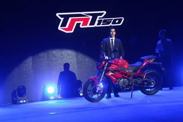 TNT150的价格之前已经通过网络公布过,此次也在泰山峰会上进行了正式发布。贝纳利亚洲营销总监Dante先生进行发布。此车在之前已经有过很多介绍,是一款外观造型非常潮的街跑车,运动风格更加鲜明,车身采用钢管编织车架,LCD全液晶仪表,并加入了挡位显示,最大功率:9.6kW/8000rpm,最大扭矩:12.8N•m/6500rpm,大于国内一般150排量发动机。
