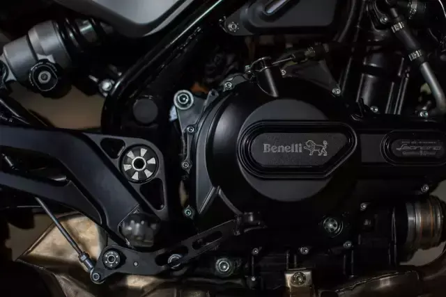 整车采用基于贝纳利成熟的车架技术的,高强度轻质钢管编织车架,确保整车有良好的操控性,手把也是利于操控的加宽设计。LCD液晶仪表将复古与科技有机统一,独特的大灯设计,内嵌贝纳利标志和倒U型日行灯。