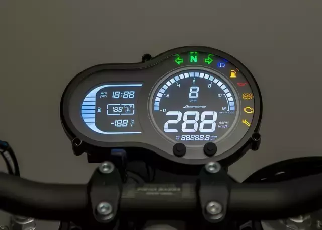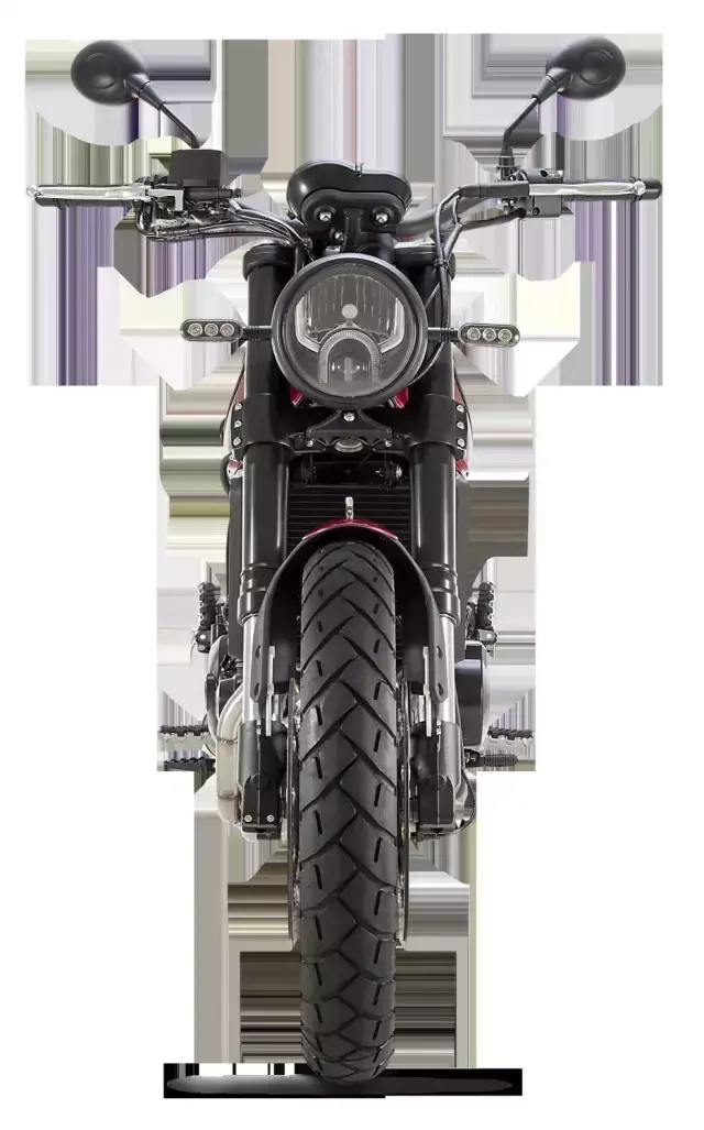 LCD液晶仪表将复古与科技有机统一,独特的大灯设计,内嵌贝纳利标志和倒U型日行灯。