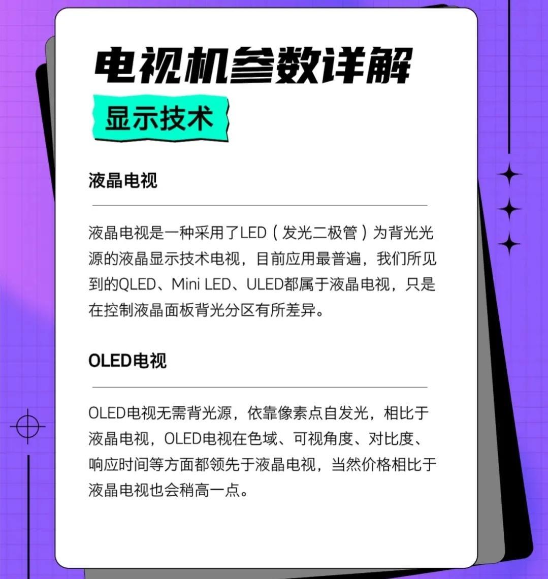 首先,我们得知道现如今市场上都有哪些显示技术的电视。目前主要就是液晶电视和OLED电视。