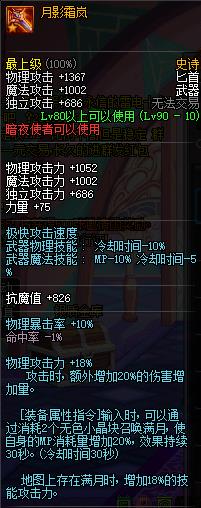 18技能攻击力,18物理攻击力,20的额外黄字,还附带黑月特效,月亮的加成简单粗暴,鹦鹉和刺客的神器。