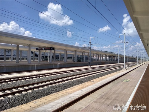 站后登车月台后面的连绵小山,配上这天然蓝还是很美的