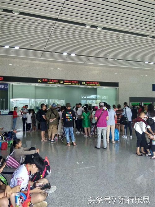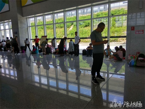 也许上设计的时候都没想到会有这么多旅客,也可能是班列太少,造成旅客过于集中,很多人都没在候车厅找到座椅,所以候车厅中间也有旅客席地而坐,四周靠墙更是坐满了人,然而不知道二楼是什么去处,没有开放。而乐行君也是进去之后没地方坐,找了个没人的墙角,蹲着等车,但是这个空间并没有享受几分钟,就有几个大妈大包小包的拖来紧挨乐行君歇脚,淡淡的忧伤啊,哈哈!
