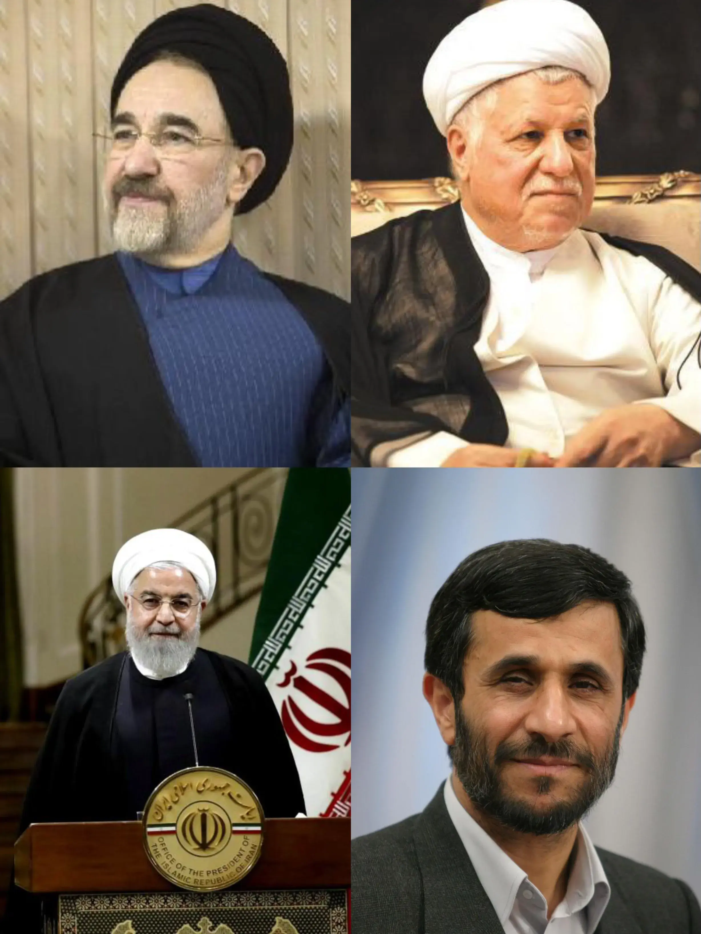 此前四任总统,左上角:哈塔米,右上角:拉夫桑贾尼,左下角:鲁哈尼,右下角:内贾德。