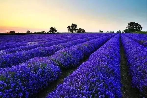 大片大片熏衣草花田宛如深紫色的波浪层迭起伏,