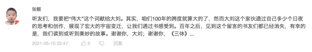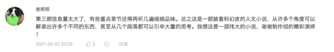 《三体》有声剧完结之后,一路追完剧的真爱粉们们纷纷表示不舍和感动: