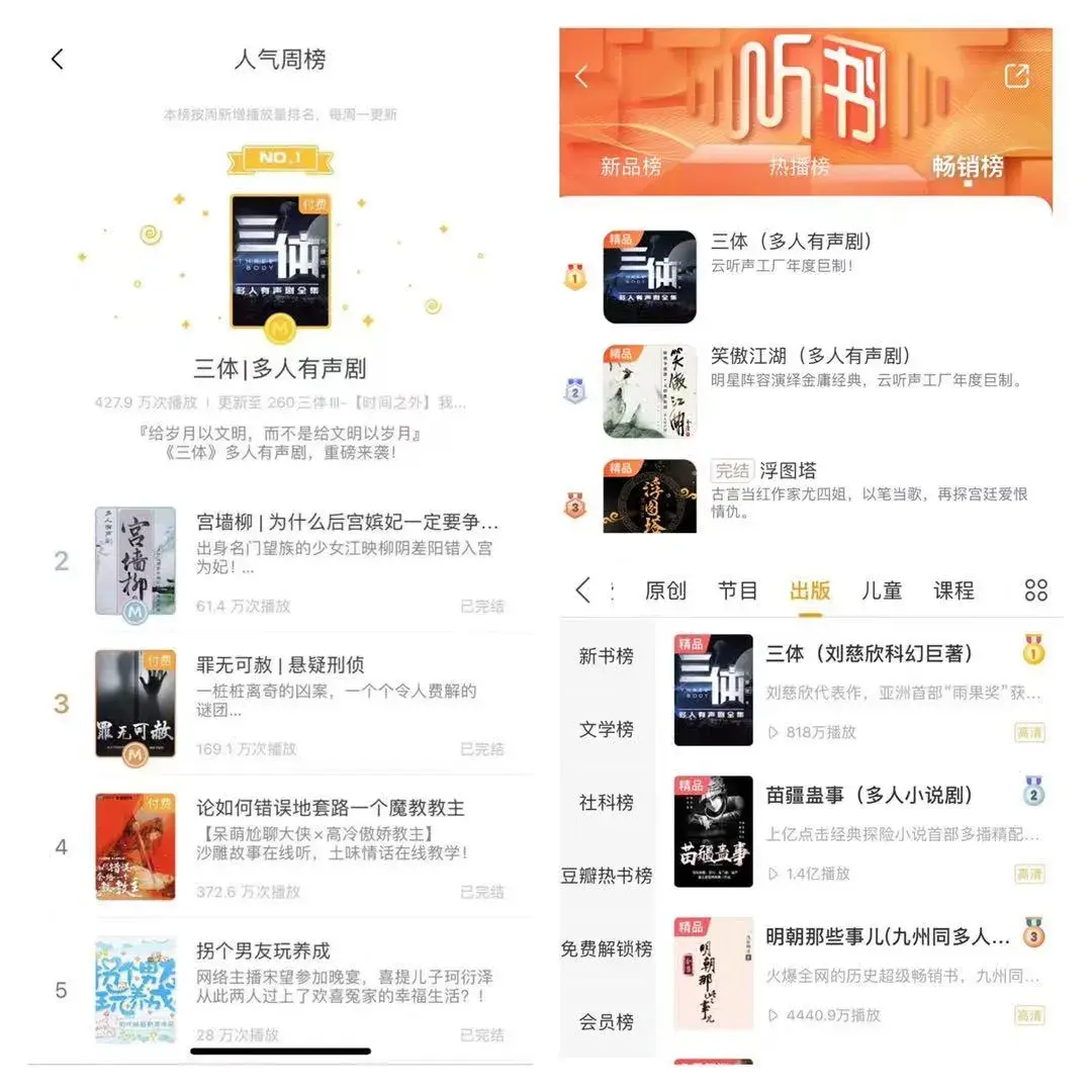 时至今日,《三体》有声剧仍高居各大榜单第一名!