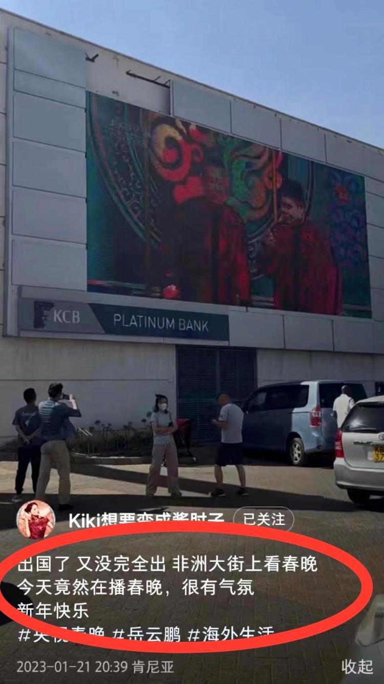 还有华人在社交平台上留言:出国了,又没完全出,今天竟然在非洲大街上看到春晚直播,很有气氛,新年快乐!