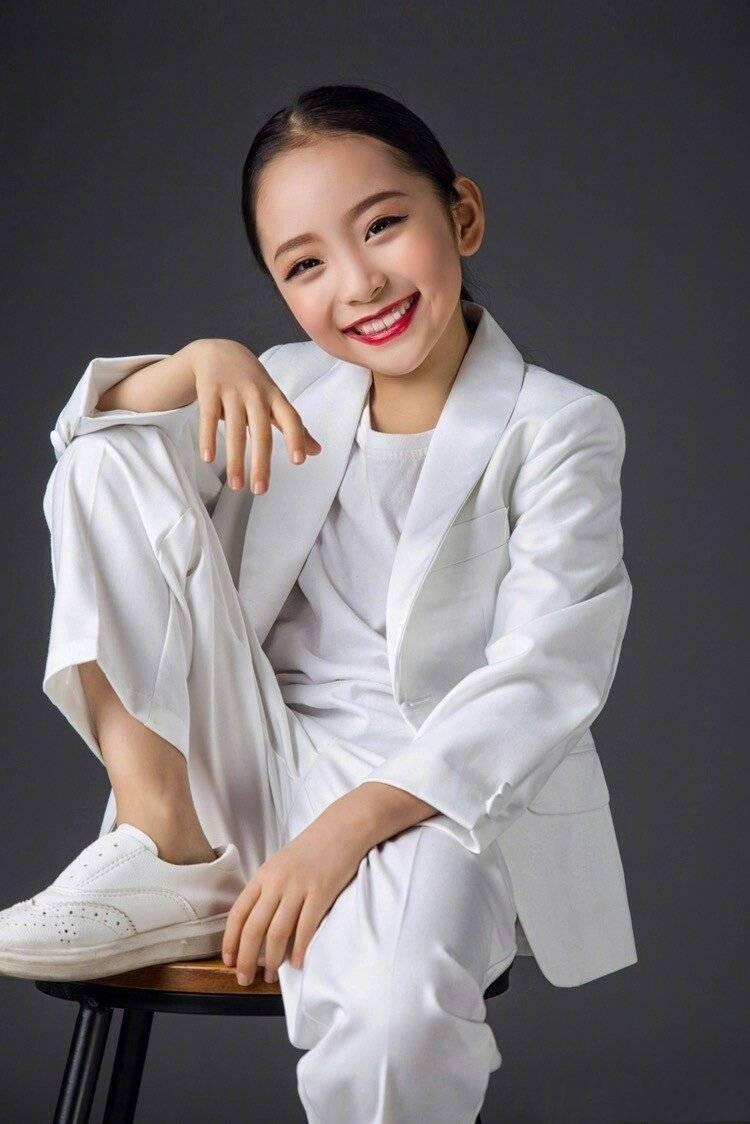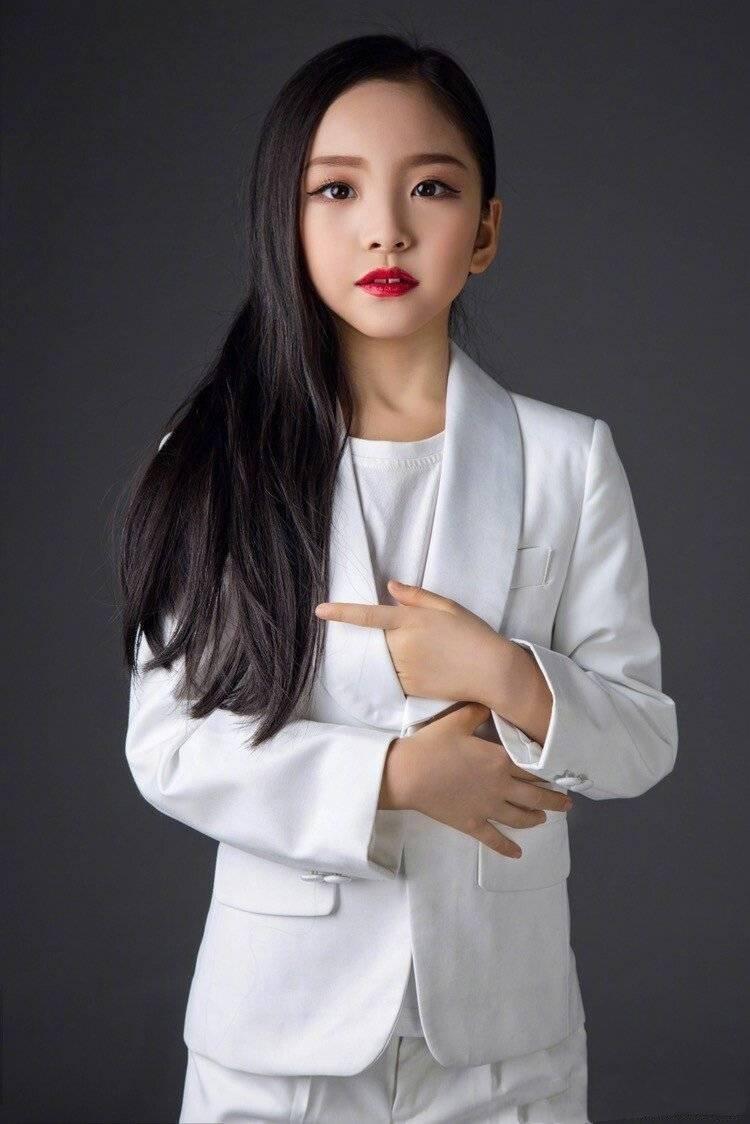 扎上马尾辫涂大红唇,五官更显精致。其实如果不是稚嫩的小手,看起来真不想是9岁大的孩子,妆容略显浓重了些,还好五官比较大气,也算是hold住。一身白西服搭配镂空小白鞋,复古又有范。才9岁气场可一点不输姐姐范冰冰。