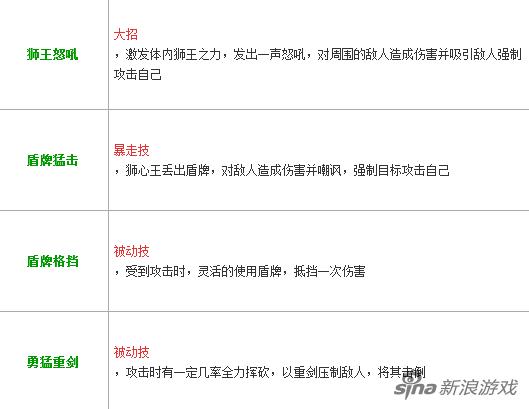 狮心王理查德技能图鉴