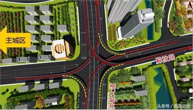 由于龙王庙立交属于“单纯式”立交,设计初衷也仅为引导洪都大道上南北方向车辆快速通行,以免与解放路东、西方向车辆产生交叉发生堵塞。随着南昌交通的发展,龙王庙立交已经不能满足车辆通行的需要。乘着洪都大道快速路改造项目的“东风”,龙王庙立交将被拆除,取而代之的是一座可连接解放西路与洪都大道的互通立交——解放路立交。