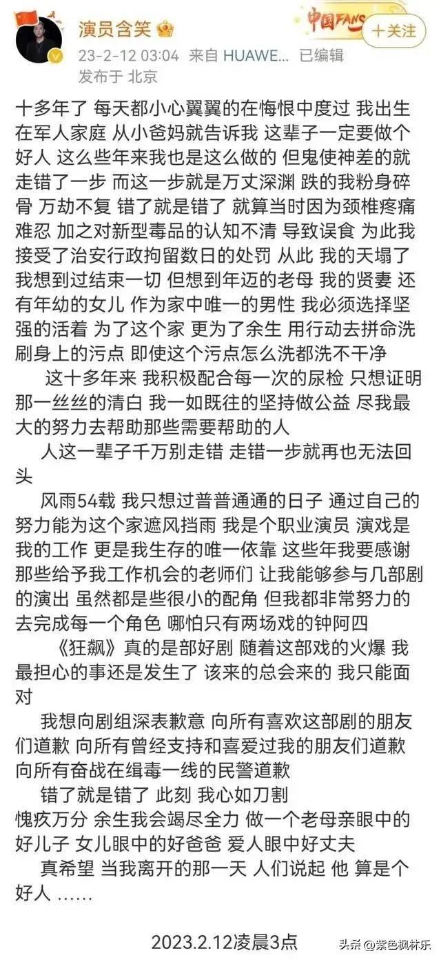 片场出声明后,随后含笑也跟着出来道歉。人这一辈子千万别走错,走错一步,就再也无法回头。错了就是错了,此刻的他心如刀割。愧疚万分,只想竭尽全力做一个老母亲眼中的好儿子,女儿眼中的好爸爸,爱人眼中的好丈夫。