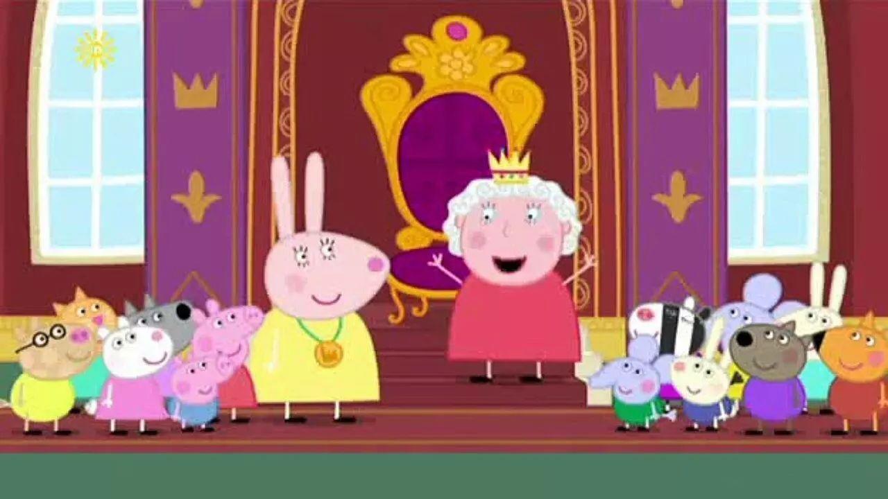 7.小猪佩奇还见过英国女王,和女王一起跳泥坑。这种待遇可不是普通家庭的孩子能享受的。