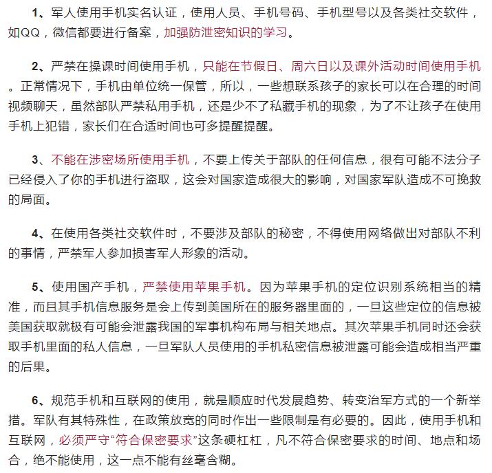 随着新条令的下发,也看得出来,手机、网络已完全融入官兵生活,但是官兵的安全意识和防泄密意识较低,成了部队的隐患。部队官兵在使用手机以及互联网时,也有相关的规定,应该注意什么呢?
