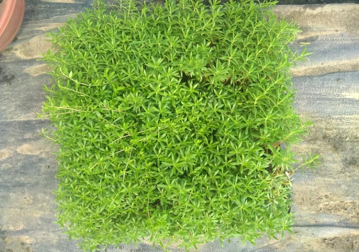 狗牙齿草长得还是非常有特色的,它的茎干和叶子都是肉嘟嘟的。尤其是它的叶子是肥厚的倒披针形至长圆形的,以轮生为主。而且这种叶子肉乎乎的,看起来有点像多肉植物的叶子。