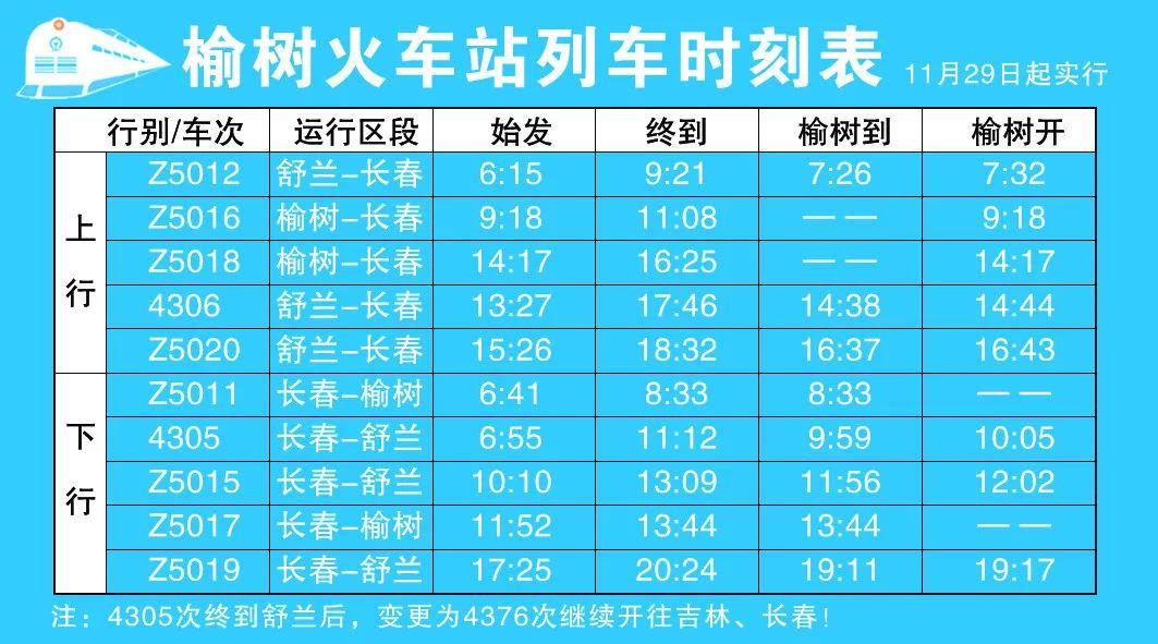 11月29日,榆树至长春提速,“Z”字头列车正式运行。
