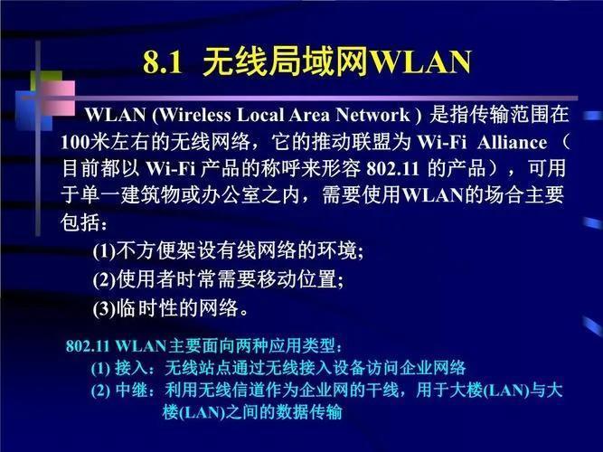 WLAN,全称为无线局域网(Wireless Local Area Network),是一种利用无线通信技术实现的局域网。与传统的有线局域网相比,WLAN不需要通过电缆进行连接,而是通过无线信号进行数据传输。这使得用户可以更加灵活地在局域网范围内进行无线上网和数据传输。