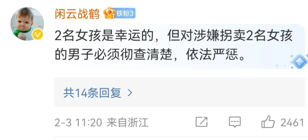 也有网友说2名女孩是幸运的,但对涉嫌拐卖的男子必须彻查清楚!