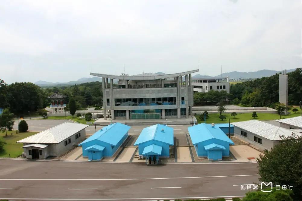朝韩边境城市板门店 蓝色建筑为朝鲜境内