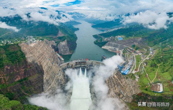 白鹤滩水电站,位于四川省凉山州宁南县和云南省昭通市巧家县境内,是金沙江下游干流河段梯级开发的第二个梯级电站,具有以发电为主,兼有防洪、拦沙、改善下游航运条件和发展库区通航等综合效益。白鹤滩水电站大坝整体采用混凝土双曲拱坝,最大坝高289米,相当于103层大楼的高度。白鹤滩水库正常蓄水位825米,相应库容206亿立方米。鸟瞰白鹤滩水电站,非常壮观宏伟。