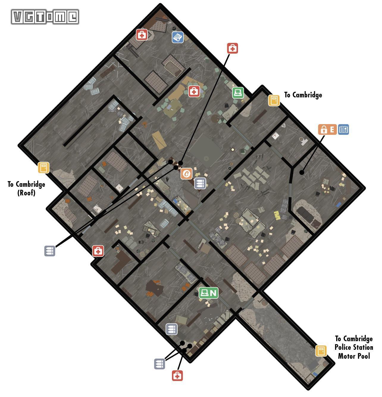 前往剑桥警察局和工匠汤姆会和。和汤姆对话后去血洗剑桥警察局。一路杀到顶楼。杀光敌人后,和工匠汤姆对话,他会给你炸药,之后汤姆进入飞机驾驶舱。警察局里有《枪与子弹》杂志,见下面地图位置。