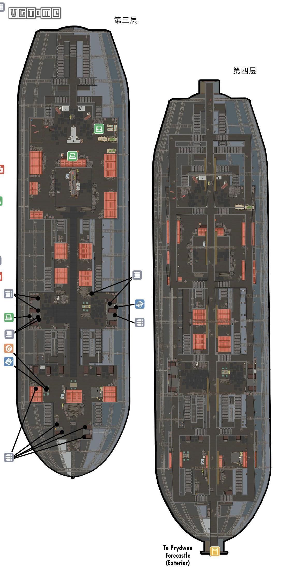 使用潜行可以降低被发现的几率,普利德温号里有很多珍稀服装道具,可以参考下面地图搜刮一下。
