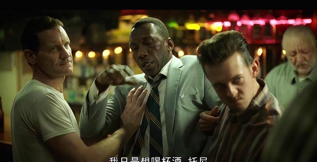 电影中,DonShirley在酒吧被一众种族主义者殴打,TonyLip前去解围: