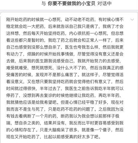 非常感谢,这位朋友给我这样的交流和分享的机会,我期待能带给更多抑郁群体的朋友以希望和信心。