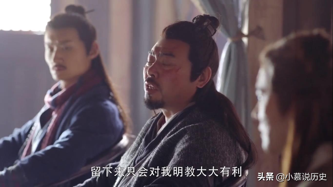 还是在同一段,眼看赵敏要离开,朱元璋却向前阻拦,明眼人都看得出来此时张无忌面露不悦,但为何还要如此?
