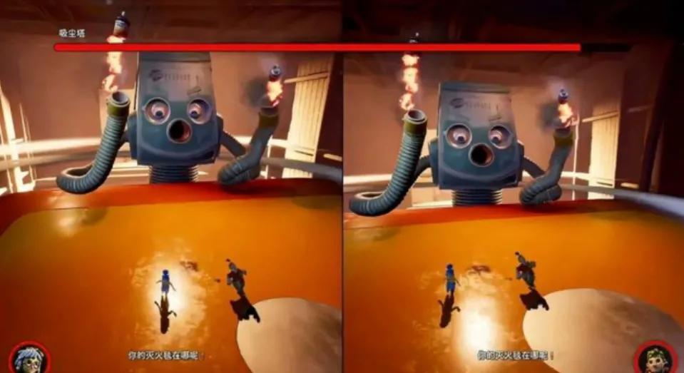 这个游戏在玩法上实现的最大创新,就是能够实时地看到另一位玩家的动向。屏幕被分割成了两半,你和你的另一半各自占据一半的屏幕,也正是有这个的存在,你可以正儿八经地观看另一半在出糗时的样子或是频繁阵亡时的样子。