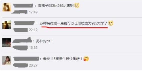不过也有网友调侃,看样子983大学比985大学厉害呀、苏神如果能够稍微再慢一点的话,暨南大学就可以成为“985大学”了。