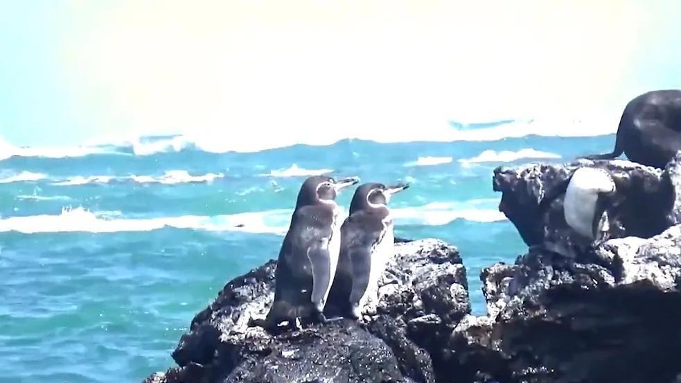 加岛环企鹅位于四面环海的加拉帕戈斯群岛。