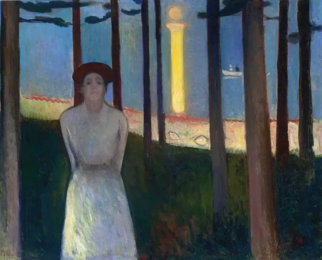从大约1892年到1908年,蒙克大部分时间都在巴黎和柏林之间。1909年,他决定回到家乡挪威。在此期间,蒙克创作的大部分作品描绘了他对大自然的兴趣,并且还注意到他在这些作品中使用的色调和颜色确实增加了,并且看起来比他过去几年创作的大多数作品还要多。