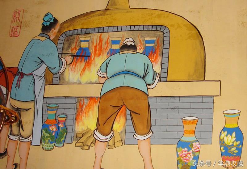 四、烧蓝:是将整个胎体填满各色釉料之后,再拿到炉温大约在800度的高炉中,用一些矿物石头粉作为燃料焙烧,色釉由细末状固体熔化为液体,待冷却后成为固着在胎体上的色釉,但此时色釉会低于铜丝高度,所以的再一次点蓝,再一次焙烧,一般要连续四五次,一直到将色釉填到与花纹铜丝相平的高度才算完成。
