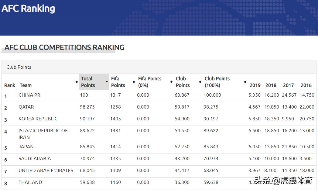 亚足联38家联赛完整积分排名:中超60.867分!澳超跌出前十