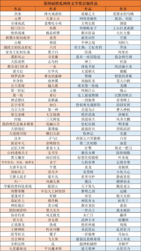 速度围观:第四届橙瓜网络文学奖年度十大作品诞生