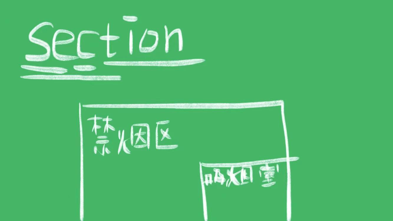 某物的一部分(比如说禁烟区就是non-smoking section),医学专业名词——切口、剖腹产手术,生物专业名词——切片,建筑、地理、工程专业名词——结构的切面图或模型、断面图或模型,切面、剖面、截面。在英式英语中还可以做动词,指官方强制某个有精神疾病的人留在医院接受治疗,因为他们可能会伤害自己或别人。