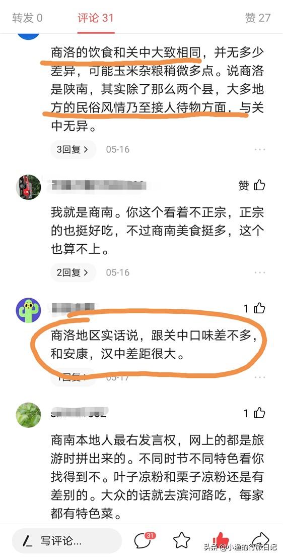 结果就是,很多网友留言说:商洛的饮食乃至民俗风情,其实都和关中很接近。