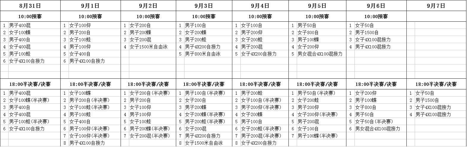 天津全运会马上就要展开,本届大赛,中国泳坛第一人孙杨无疑是最耀眼的明星。在本届赛事上,孙杨带着刚刚结束的世锦赛两金光环,继续出发。本届全运会上,由于个人实力过人,加上孙杨所在的浙江游泳队太过出众,为此孙杨大胆报了7个项目,他将向7项冠军发起冲击,以下,我们先来看看孙杨比赛所在的日期!