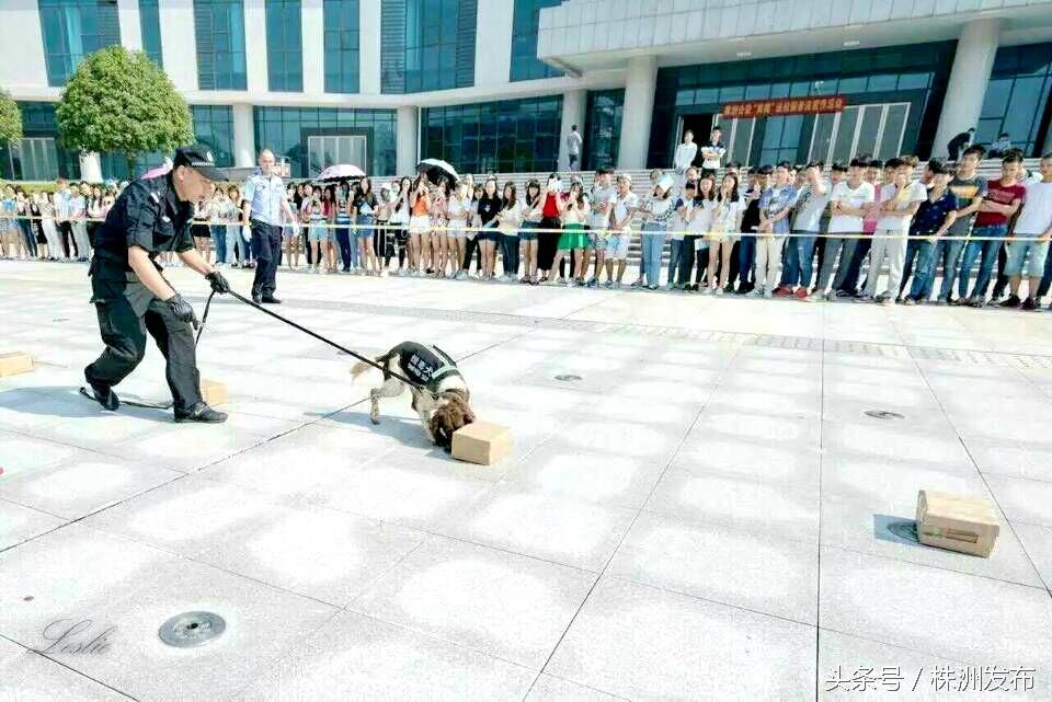 “哇,警犬太神奇了!”一阵惊叹声响了起来。9月23日上午,湖南化工职业技术学院,市公安局特警支队民警带着3条警犬,与该校300余名师生来了场亲密接触。匍匐、站立、跳跃……在驯导员的指挥下,警犬“马特”灵活地完成了一系列表演动作。