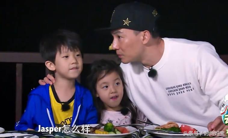 在餐桌上,刘畊宏就轻声对着儿子说到:Jasper怎么样,跟你在电视上看到的,是不是一样,他是不是比电视上的更可爱。刘宇恩听完后,立刻回头看向了Jasper,满脸幸福感的点了点头。