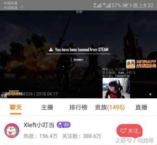 就在毒奶色黄旭东评论小叮当微博不到半天时间,正在斗鱼直播绝地求生的小叮当被V社给永久封禁。上百万正在观看小叮当直播的网友一同见证了这尴尬的时刻。