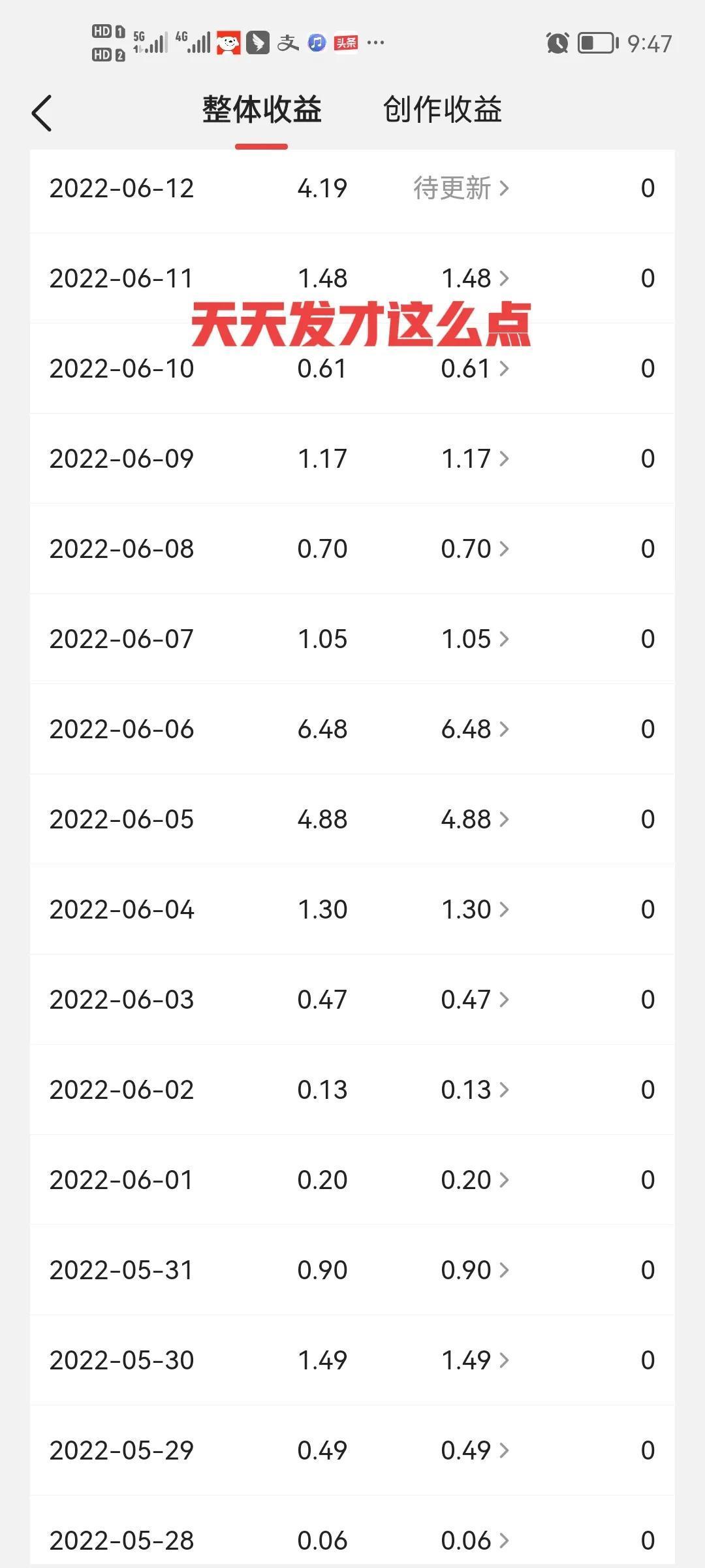 这就是头条的现状,和很多其它行业一样,自媒体领域也是严重内卷。所以说对于大多数普通的头条创作者来说,最好放弃靠自媒体赚钱的幻想。那真的只是一个梦,不是每个人都能实现的,能靠这个赚钱的人也是属于金字塔顶端的极少数人。除非你有这方面的天赋和能力,不然还是老老实实地搬砖来钱快,至少脚踏实地的干活可以养活自己。想靠自媒体来养活自己,迟早会饿死在半路上。最好是把自媒体创作当作一个爱好来培养,在这里你可以畅所欲言,可以和广大的朋友交流,可以看到更大的世界。而这些远远比那可怜的收益来得更实在,更有意义!