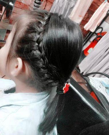 女童后梳编发扎马尾辫发型